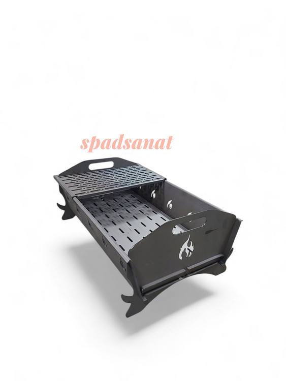 منقل مسافرتی جمع شو.مناسب طبیعت . تولید شده با ورق ۲ میل . با وجود خمکاری ها در ورق های به کار رفته به هیچ عنوان در حرارت تاب بر نمیداره . ابعاد طول ۶۰ سانت عرض۳۰ سانت